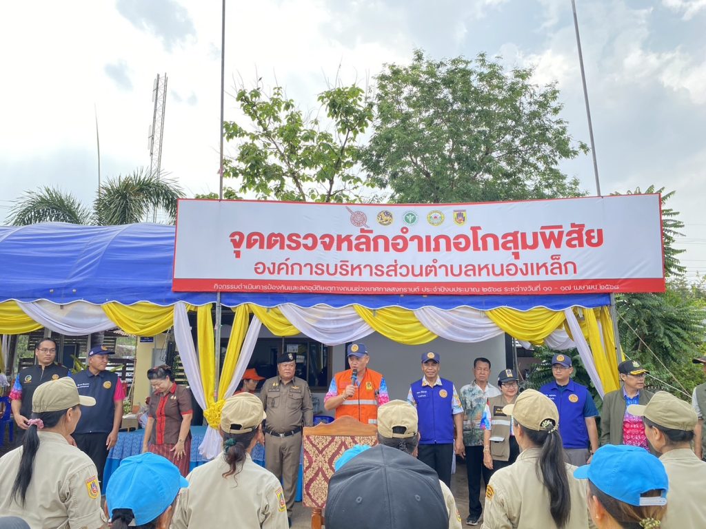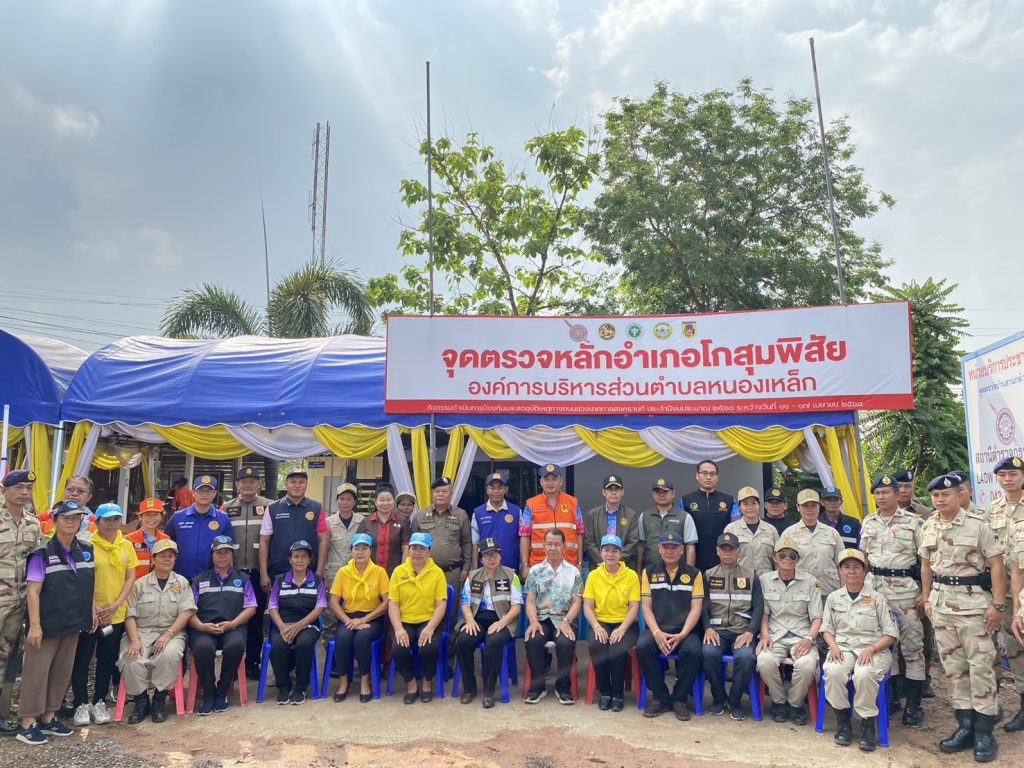 นนี้ (11 เม.ย.68) เวลา 15.00 น. นายกนก ศรีวิชัยนันท์ รองผู้ว่าราชการจังหวัดมหาสารคาม,นายฉลอง พึ่งโคกสูง นายอำเภอโกสุ่มพิสัย พร้อมคณะ ได้เดินทางมาตรวจเยี่ยมจุดตรวจหลักป้องกันและลดอุบัติเหตุทางถนนช่วงเทศกาลสงกรานต์ พ.ศ.2568 ณ จุดบริการประชาชนตู้ยามสวนกล้วย โดยการอำนวยการของ พ.ต.ท.มนต์ชัย สารพิมพ์ สวญ.สภ.เหล่า มอบหมายให้ พ.ต.ท.รุ่งเรือง สิมมา สวป.สภ.เหล่า เป็นผู้แทนต้อนรับ พร้อมด้วย นายก อบต.หนองเหล็ก,นายก อบต.หนองกุงสวรรค์,กำนัน ต.หนองเหล็ก,กำนันตำบลหนองกุงสวรรค์ ,ชุดจิตอาสา, อปพร. และ อสม.